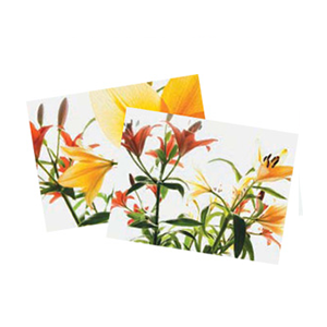 Lily notelets featuring 2 designs (10 cards per pack, five of each design). Includes envelopes. 13cm (W) X 9.7cm (H).