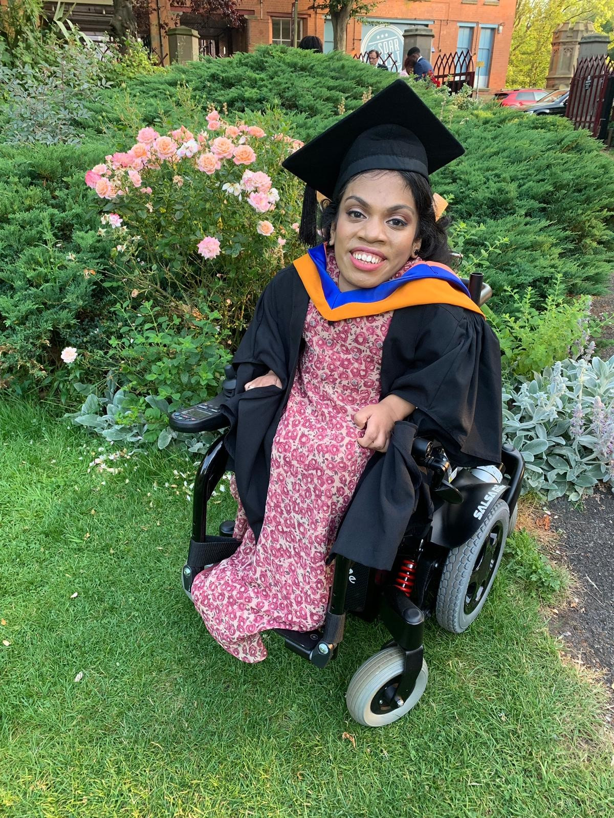 We caught up with Aisha Seedat who graduated from university last year. Living with MPS IVA Morquio and its related health complications didn't stop Aisha from completing her journey and graduating from De Montfort University in Leicester with a degree in Health studies.