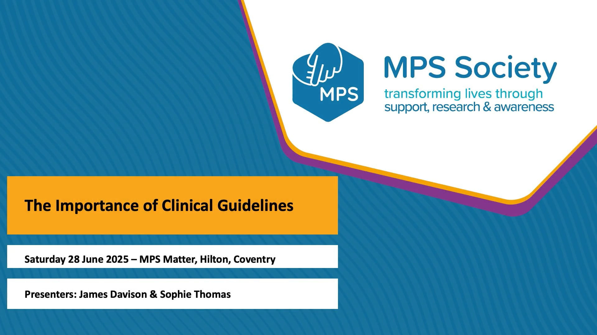 Sophie Thomas from the MPS Society and James Davison, consultant in paediatric metabolic medicine at Great Ormond Street Hospital in London, explain the development and purpose of clinical guidelines at MPS Matters 2025.